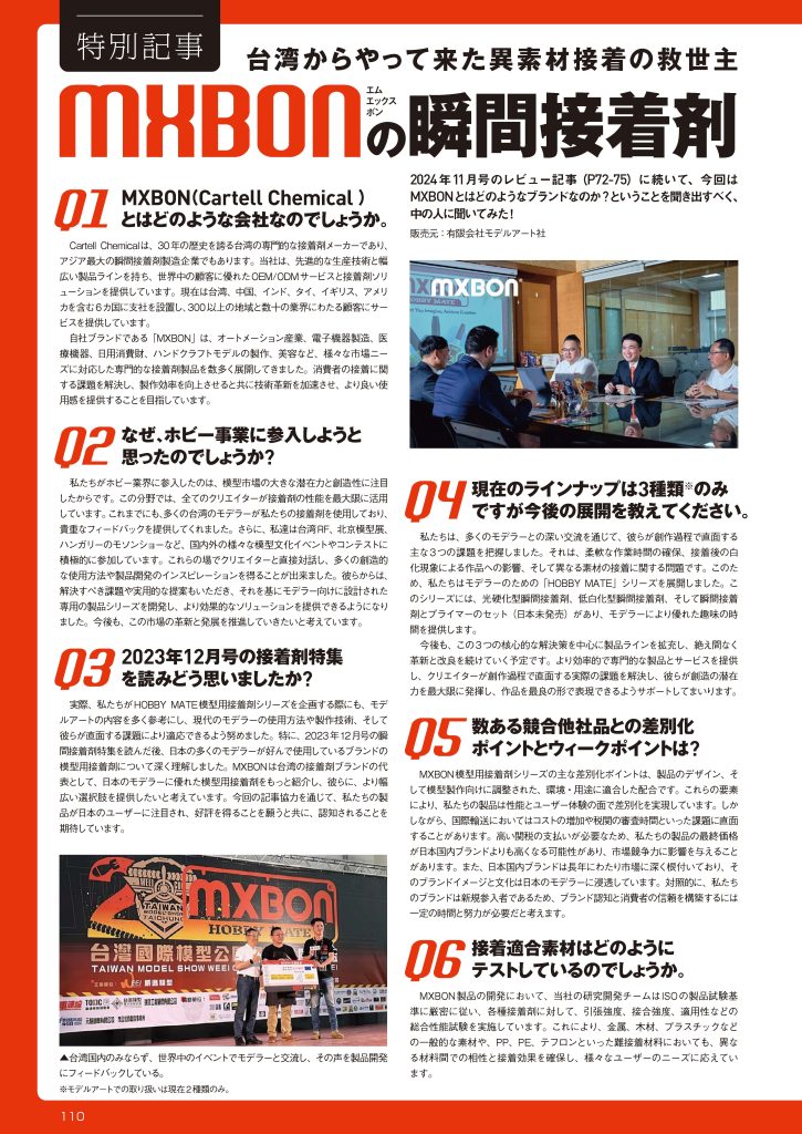after reading the december 2023 issue’s feature on adhesives, we noticed that many japanese creators prefer domestic brands. as a representative taiwanese adhesive brand, mxbon hopes that model art can introduce more high-quality overseas adhesives to japanese creators, offering them a broader selection. we believe that through this collaboration, our products will not only gain attention and affection from japanese enthusiasts but also achieve greater recognition in the international market.